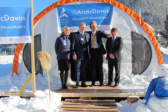 The former American Vice President Al Gore visits the Arctic Basecamp at the SLF, which is organised by Konrad Steffen and other polar researchers in 2017