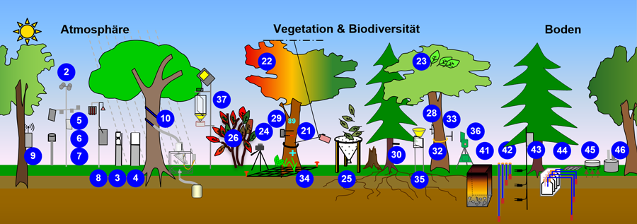 Wie wachsen Bäume? Was sind die Eigenschaften des Waldbodens? Wie wirken sich Luftverschmutzung und Klimawandel auf den Wald aus? Wie reagiert der Baum auf Umweltbedingungen wie z.B. extreme Trockenheit? Diesen und weiteren Fragen geht die Langfristige Waldökosystem-Forschung LWF nach.