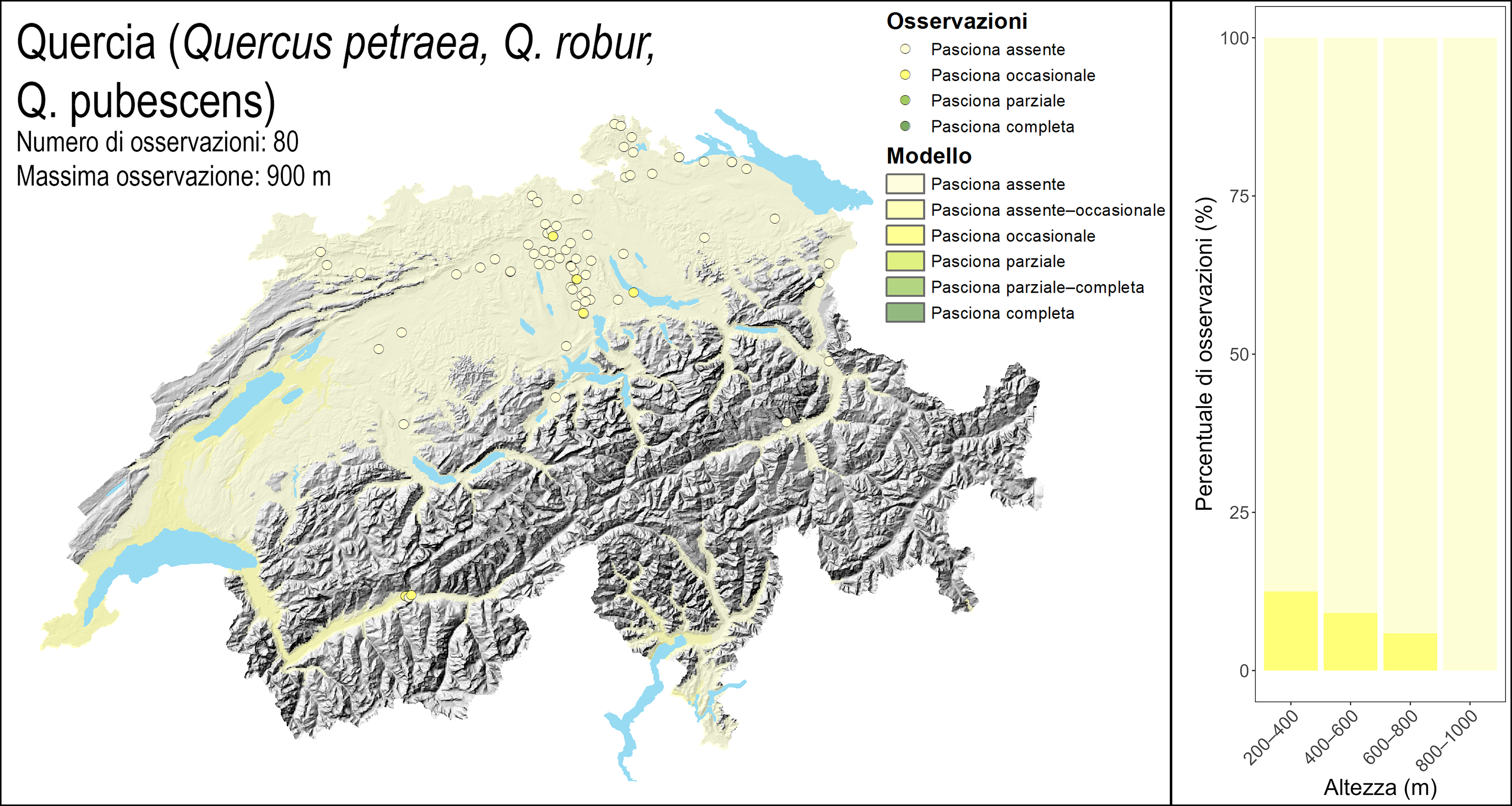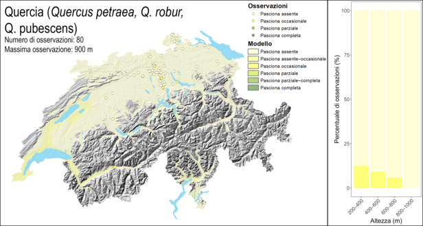 Le principali specie arboree come faggio, quercia, abete e abete bianco non hanno prodotto o hanno prodotto solo pochi semi su tutte le altitudini (pasciona assente o pasciona occasionale).